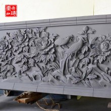 花開(kāi)富貴牡丹浮雕磚雕 仿古古建影壁照壁墻磚雕工廠