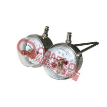 WSSX系列電接點雙金屬溫度計帶有電接觸裝置一即機械電接點。當被測介質溫度變化時,自由端上的細軸及轉向傳動機構帶動指針及動觸點轉動,在標度盤上指示出溫度的變化值,當其與定觸點(上、下限定觸點)接觸或斷開時的瞬時,使電路系統(tǒng)中的繼電器及接觸器動作,以達到自動控制和報警目的,應符合JB/T8803 1998標。