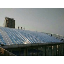 大跨度鋼架,網(wǎng)架采光頂棚用輕型防火阻燃陽光板耐力板聚碳酸酯板 2mm耐力板拱形弧形鋼結(jié)構(gòu)骨架廊架屋面采光遮雨頂棚造價低強度好 抗砸高透光pc耐力板價格低,遮雨采光頂棚就用透明耐力板替代玻璃
